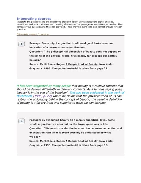 Integrating Sources Worksheet - Integrate the source as a quotaion with appropriate intext documentaion integrate the source as a paraphrase (rewriing the meaning of the quotaion. For each of the following: First, create a signal phrase or introduce the source. This handout explains how to introduce, use, and cite outside sources in your paragraphs. You must acknowledge sources regardless of whether you’ve quoted, paraphrased,.