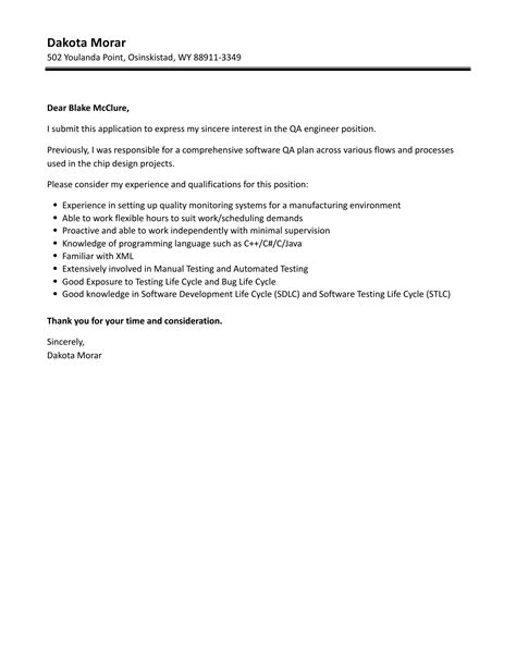 Whether you need tips for entry. Professional qa engineer cover letter samples from real job applications. A qa engineer cover letter is an important part of a job application for any qa engineer position.